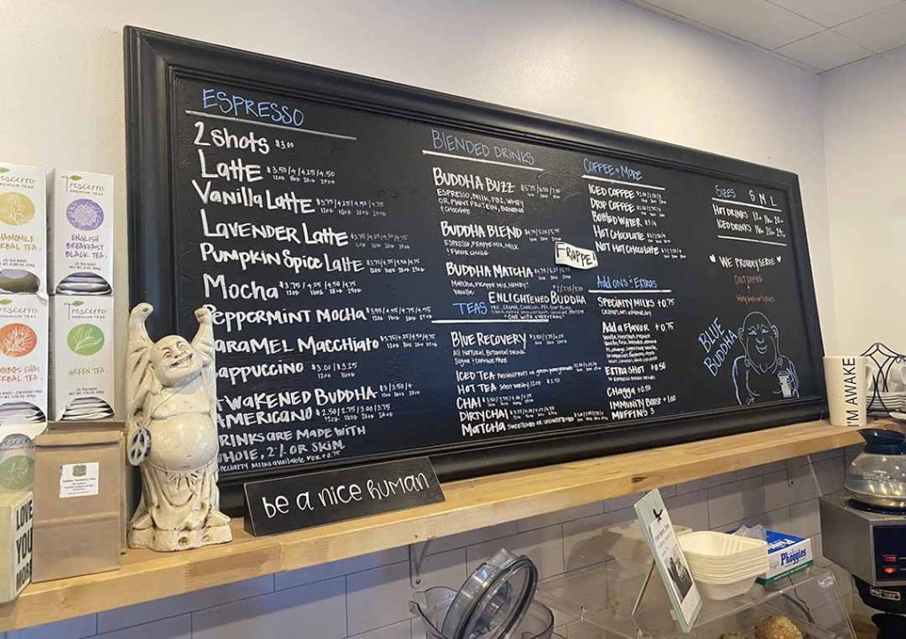 Blue Buddha Café is one of Waltham’s hidden gems, offering a warm, cozy, and artistic vibe. As soon as you step inside, you’re greeted by vibrant murals and eclectic décor that makes it feel like a second home. The café is small but has a big heart, and it’s not just about the coffee here. The atmosphere encourages creativity, with plenty of comfortable seating and a selection of local art adorning the walls.
